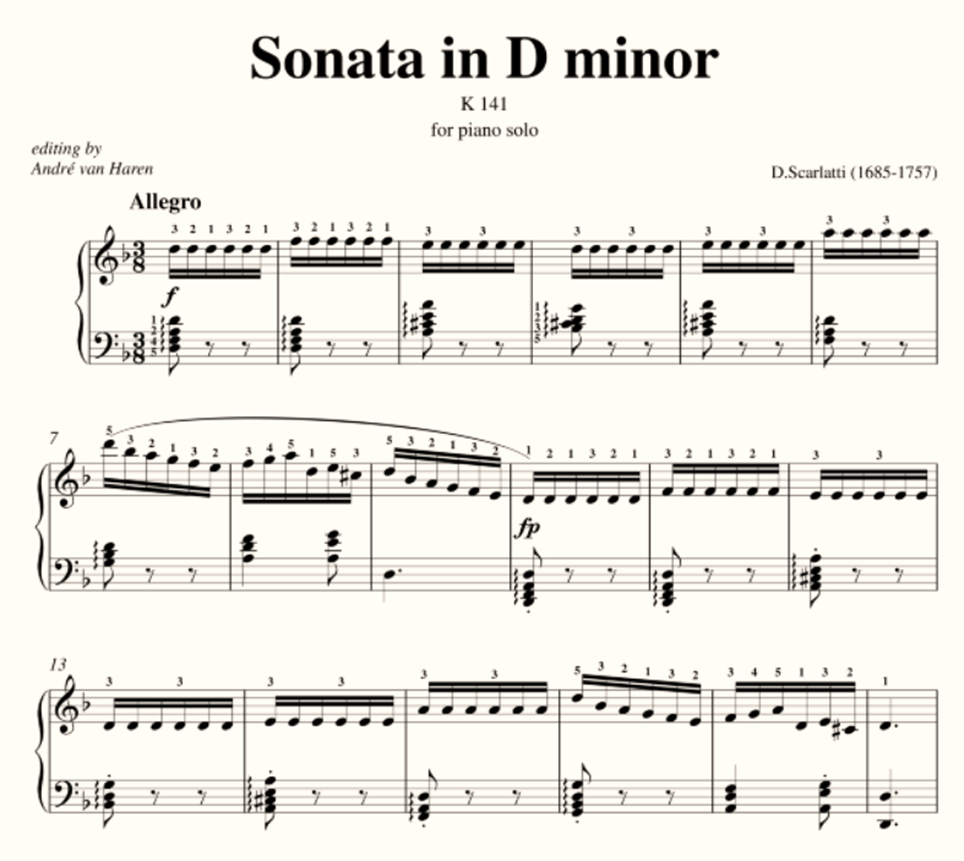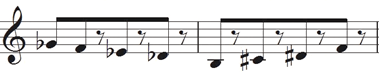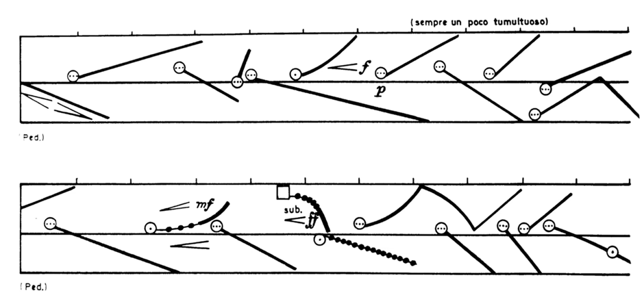 Heinrich Neuhaus (1973) noted that a pianist’s touch can be placed into two groups: 1. Simultaneous key depressions, that is, the harmonic aspect and 2. Successive key depressions – which represent the melodic aspect. The latter contains two variables: key speed and time interval between key depressions. Ortmann (1925) summed up that the differences between legato, mezzo-legato, portamento and staccato touch are produced merely by the “differences in the ratio of sound duration to silence” or, in other words, the “differences in the time-interval between a key-release and the next key-depression” (p. 52). The following is an example of ‘pianistic stippling’: