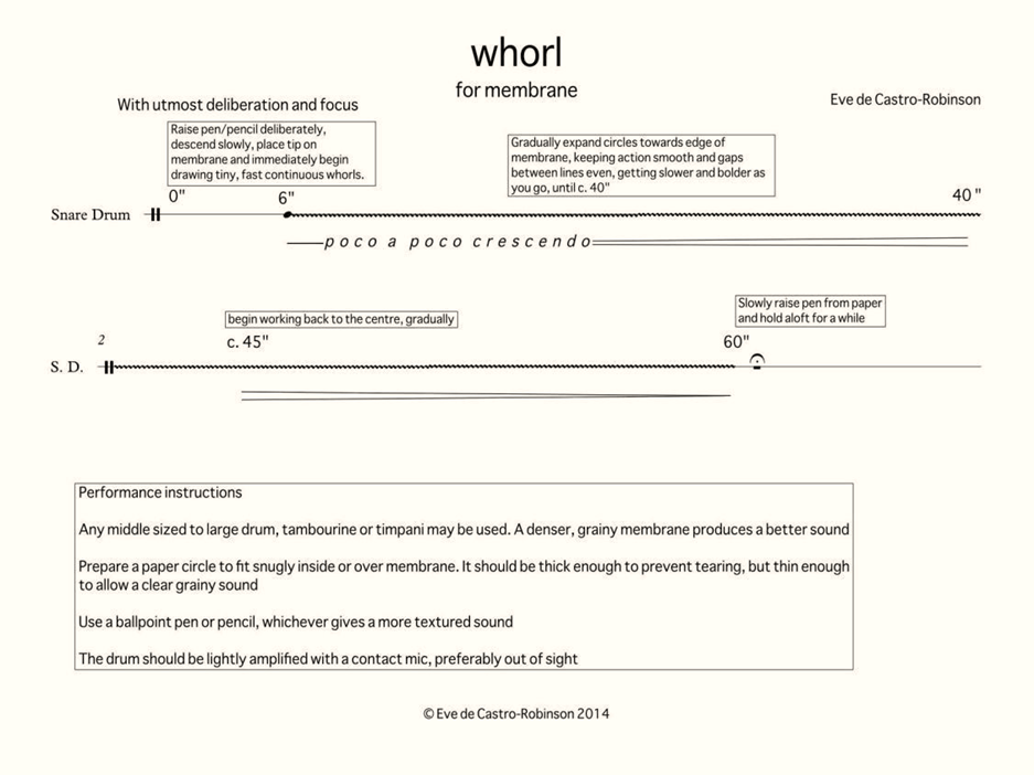 De Castro-Robinson, E. (2014). Whorl [artwork] and Whorl from membrane [musical score]. Auckland, New Zealand.