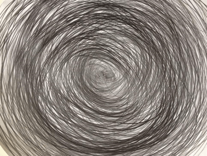 In whorl by Eve de Castro-Robinson, the artist/performer is instructed to employ a circular motion of the wrist and arms to create the work: